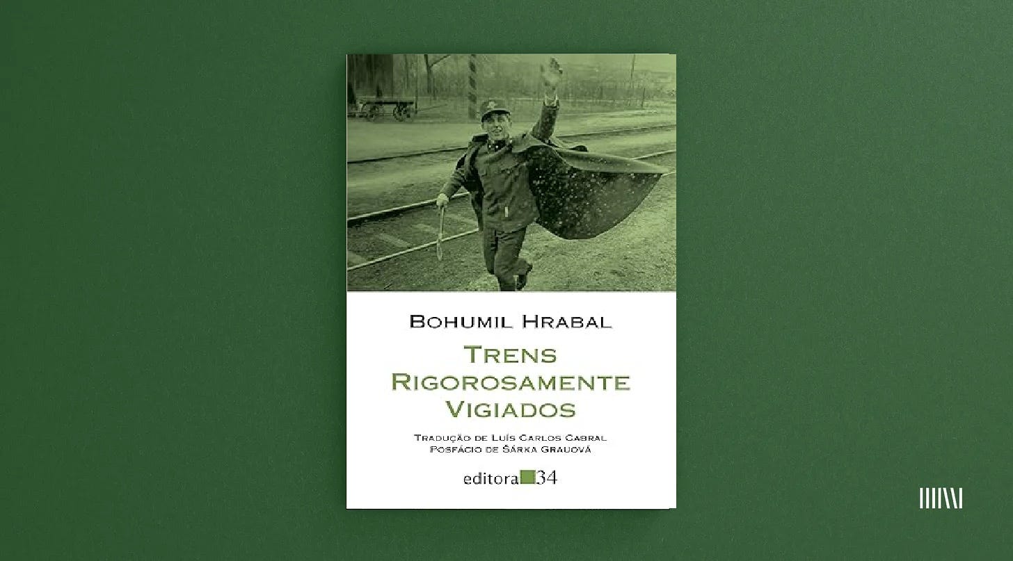 Tomei um susto quando vi que num livrinho tão pequeno cabia um baita romance de formação, um panorama bem contundente da resistência à ocupação nazista na Tchecoslováquia, com o horror surreal do sururu da Segunda Guerra, e tudo dentro de um retrato inacreditavelmente divertido de um lugarejo que vive em torno de uma estação de trem. O tom é diferente de tudo que se poderia esperar dessa breve (e confusa) sinopse, porque é coloquial, engraçado, meio causo, meio clássico, num texto que vai passeando do susto do terror ao deboche mais deslavado, que é o único jeito de lidar com alguma dignidade com o horror passado. Mas, principalmente, é um livro cheio de acontecimentos, sexy e trágico, histórico e fanfarrão, absurdo e realista, safado e sisudo, porque no fim é um documento sobre o século 20 como a gente deveria guardar — reconhecendo o terror e celebrando um vida insistente, curiosa e humana. É uma delícia como ele passeia, como ele dança entre a fogueira do trágico, num movimento que é o que deveria ser a literatura, porque é um recorte do mundo.